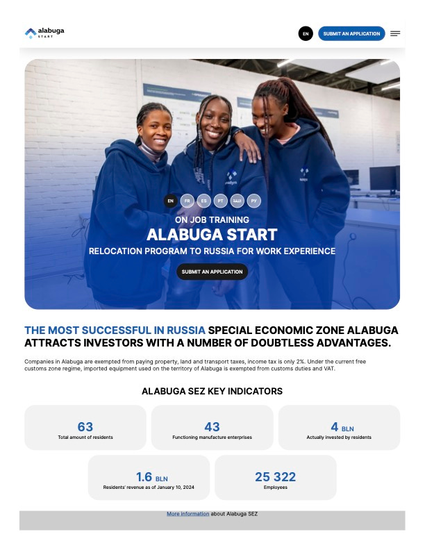 Promotional materials from the Alabuga Start webpage are vague about what work is performed in the Alabuga Special Economic Zone. The website features numerous pictures and testimonials from young African women. Source: Alabuga Start North Korea is not nearly so concerned about the working conditions of its citizens in Russia. Pyongyang is reported to have kept some of its overseas workers in Russia confined to construction sites where they work for up to 18 hours per day in slave-like conditions.