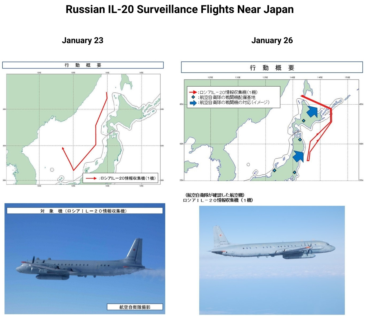 On January 26, the Russian Vishnya-class intelligence ship, Kareliya, concluded a two-week mission conducting maritime surveillance of Japanese territory. According to Japanese Defense Minister Shinjiro Koizumi, the operation was supplemented by additional Russian IL-20 surveillance aircraft on January 23 and 26, and overlapped with the deployment of a Chinese Dongdiao-class intelligence ship.