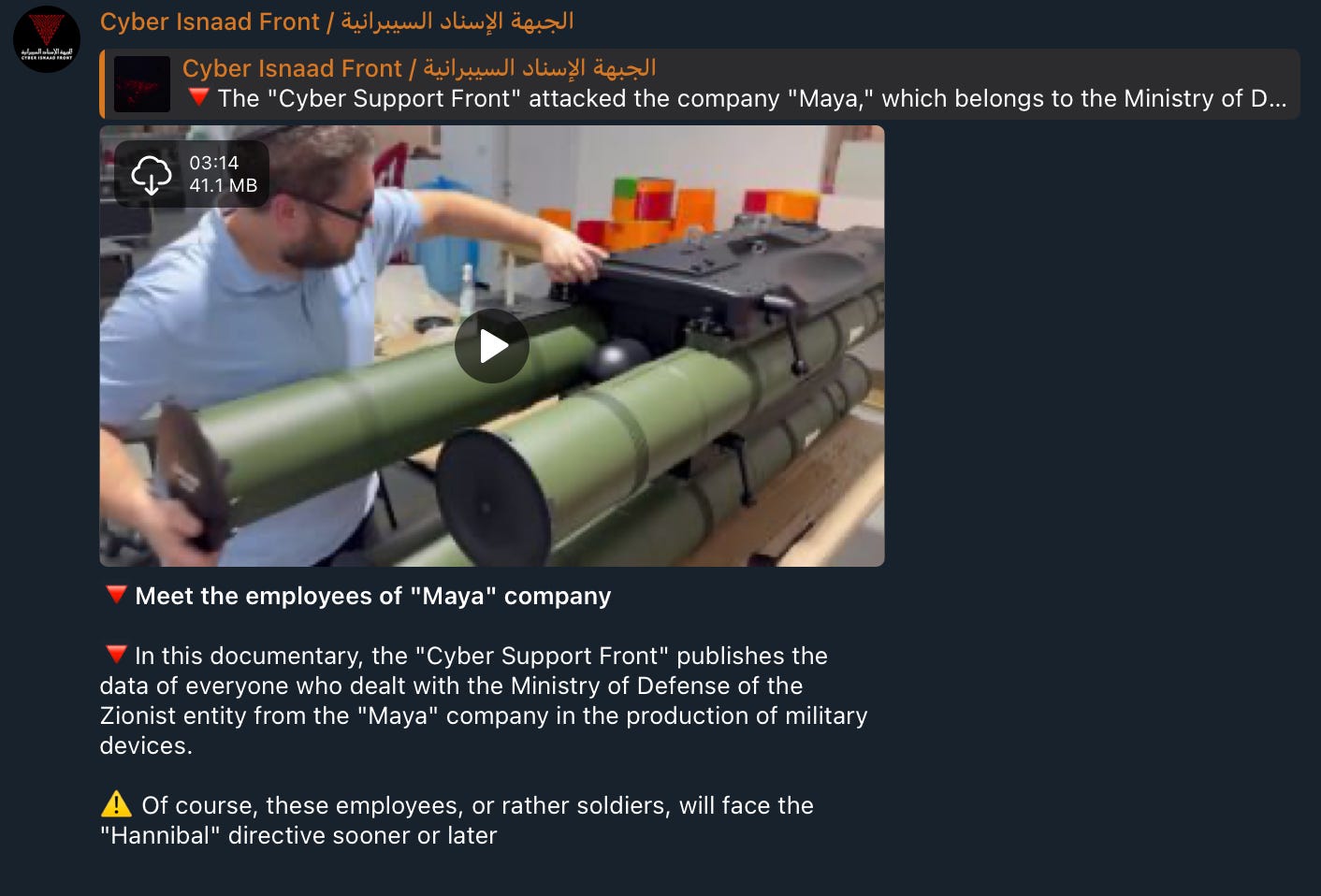Cyber Isnaad Front also published personal data on company employees, and encouraged its followers to target them.